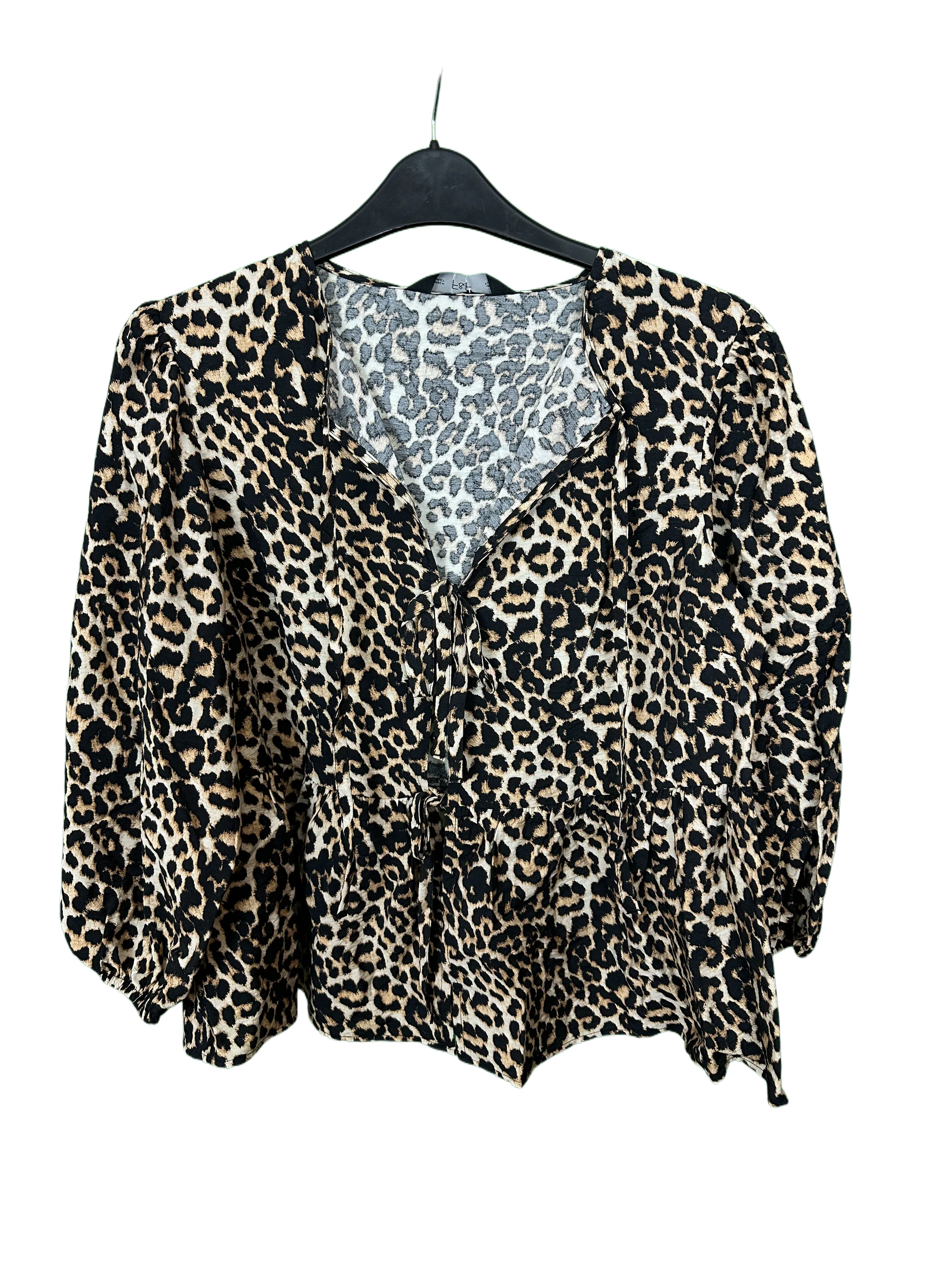 Leopard print open front top with Long sleeves elasticated cuffs and bow tie fastening